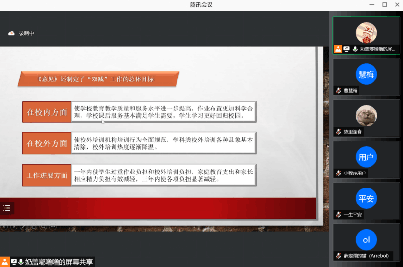 晚冬时节,雪花飘飘,洋洋洒洒的雪花预示着收获满满。活动伊始,主持人带领观众们进行有奖问答活动,大家踊跃抢答并发表自己对于“双减政策”有关问题的见解,随后,宣讲活动正式开始。首先,主讲人从中央有关文件、推进思路两方面对“双减政策”进行解读。她表示,双减政策是全面贯彻党的教育方针,落实立德树人根本任务的一项教育改革措施,推进双减政策实施将有效推进教育改革的进程。随后,主持人从源头治理、系统治理、综合治理、依法治理四方面详细解读双减政策实施的基本思路,并对员工较为关心的作业问题进行独到的讲解,并指明:减轻员工过重作业负担是“双减”的指南之一。最后,通过播放 《小员工眼中的双减政策》视频,让观众在小员工们愉快的话语中感受双减政策的魅力与作用。宣讲结束后,与会员工积极与主讲人互动,提出自己对于双减政策的疑问之处,主持人耐心为其解答,大家纷纷表示双减政策是一项有利于员工全面发展的切实政策。