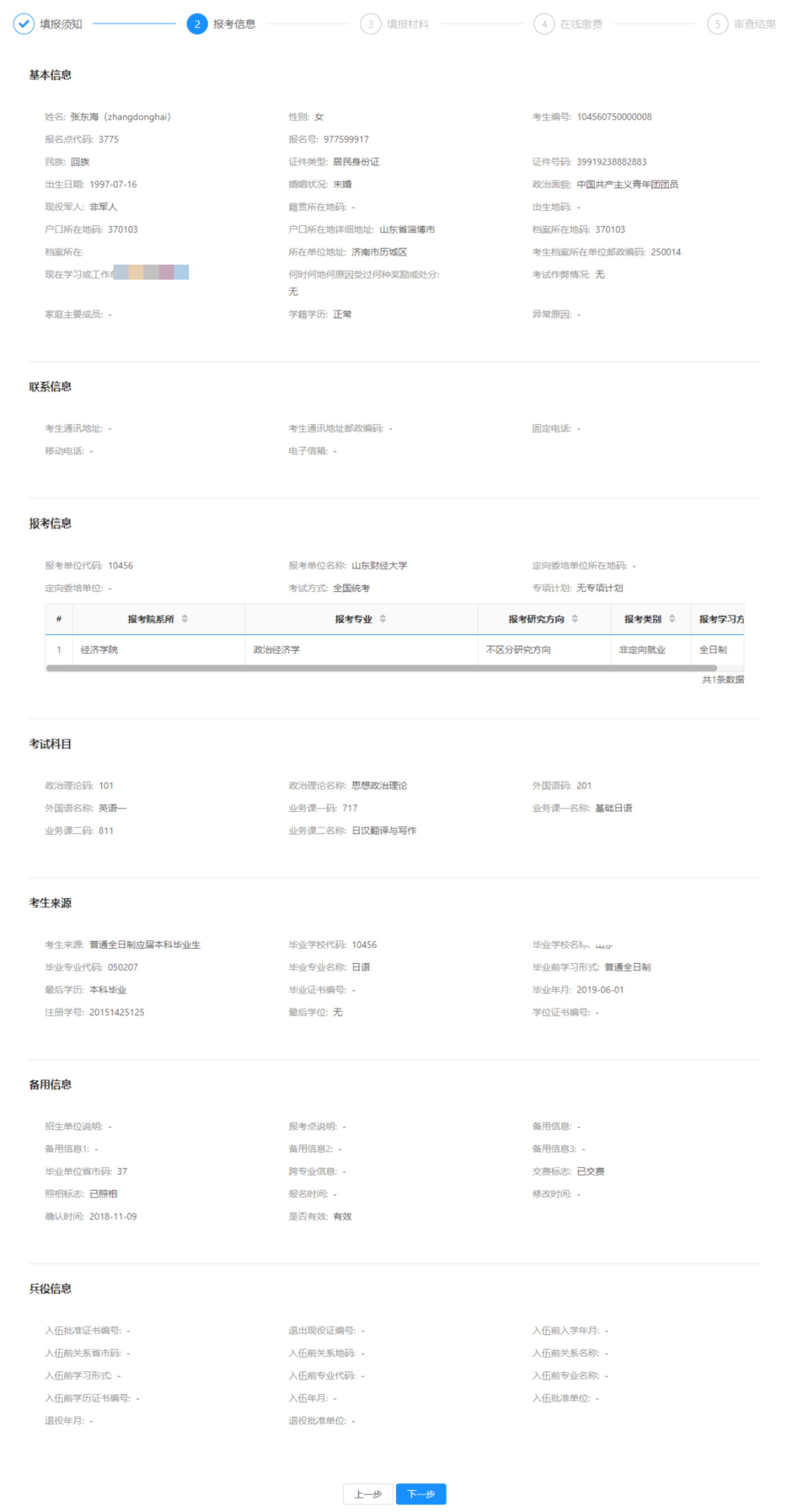 第二步:确认报考信息,查看信息后,点击【下一步】。
