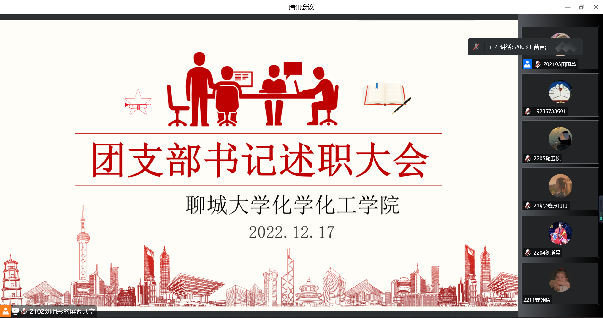 为深入贯彻落实党的二十大精神,切实加强团的组织建设,彰显团支部的政治功能和社会功能,增强各团组织的凝聚力与战斗力,广泛提高各团员员工的思想政治觉悟,促进团支部的工作顺利开展,12月17日,ladbrokes立博于线上举办团支部述职大会。本次大会由ladbrokes立博团委书记刘丽霞,辅导员赵艳敏、陈梦圆担任评委,2020级、2021级、2022级各班团支部书记参加。