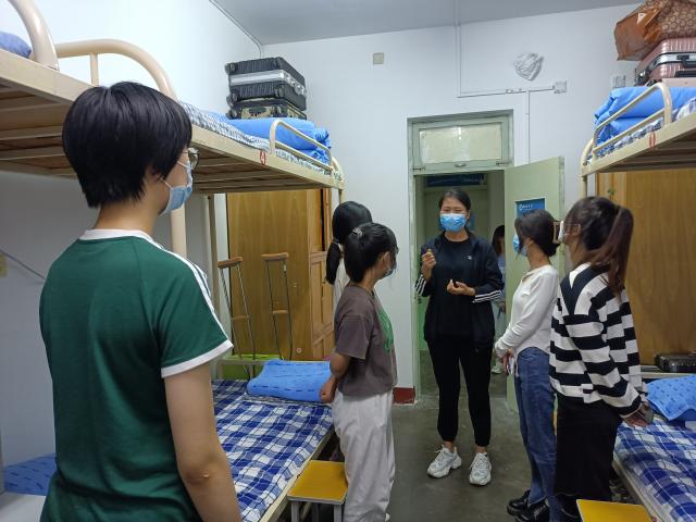 在走访过程中,领导老师与同学们进行了亲切的交流,向同学们表达了亲切问候与祝福,仔细了解了同学们疫情期间在家及入校后的生活情况与身体健康情况,并叮嘱大家要强化安全意识,加强安全知识学习,提高防范意识确保人身财产安全、交通安全、网络安全,要注意个人与宿舍环境卫生、宿舍用电规范等问题,消除宿舍的一切安全隐患,有情况及时联系辅导员老师。领导老师向同学们提出三点希望:一是希望同学们认清形势、提高站位、端正态度,高度重视并坚持疫情防控常态化,做好个人防护,增强防护能力;二是希望同学们尽快收心,调整状态,更好地适应新学期的学习与生活,做好学期规划;三是希望同学们与室友之间多交流沟通,做到相互理解和包容,共同营造温馨和谐的学习生活环境。