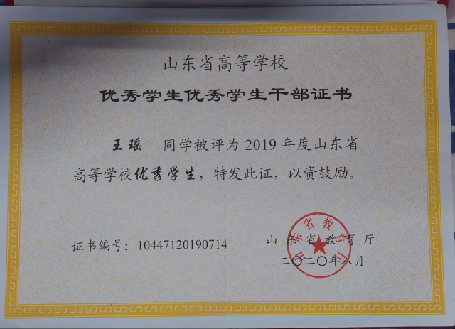 2019.11 “山东省暑期三下乡“社会实践先进个人”