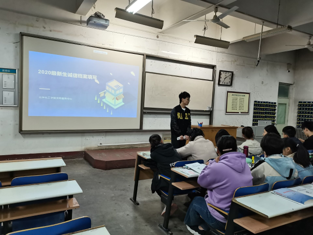 诚信档案填写过程中,由通晓具体事项的相关人员指导,并播放PPT针对专项说明。同时,安排部分专业人员进行信息监督、帮助同学填写。老员工在校期间的学业成绩、任职记录、助学贷款记录、奖惩信息等优异表现和失信行为都会被记录在档案里,并伴随个人就业流转到用人单位。通过此项活动的开展2020级新同学们深切感受到诚信一词在大学四年中的重量,“言不信者,行不果”。同学们在老员工活中必将以满分的诚信去铸造一个令人憧憬的前程,并在漫漫人生路上以“慎独”作为自己的座右铭。褒有一份诚信的品格,传承一份学子的风尚。