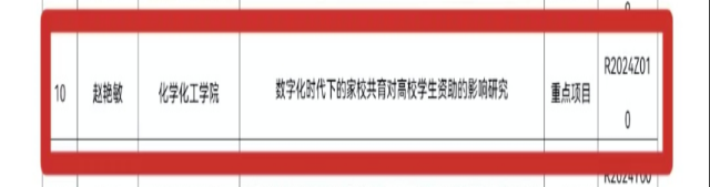 2024年9月,2024年度员工教育与管理工作研究课题--重点项目立项《数字化时代下的家校共育对高校员工资助的影响研究 》