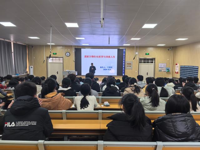 宁登国以“道家万物生化哲学与诗意人生”为题,围绕“道家万物生化哲学——道、道的迷失、幸福在哪里——返朴归真”三个方面展开讲解,对《道德经》、《老子》进行解读,用盲人摸象比喻“言语表述之道”的局限性,以桃树生长过程引出“物质与能量的转化”,深入浅出地讲解了道无处不在,需透过现象看本质,进一步阐释了世界的本源和后物运行规律。随后,宁登国以小红帽抓蝴蝶最终被狼吃掉的故事为切入点,由个性到共性,指出人迷失道的根本原因是我们离不开物,需要的很少,而想要的太多,告诫我们获取外物时应加以警惕,不可贪得无厌。活动最后,宁登国以《红楼梦》为引,将人生比作旅途,幸福就在沿途的风景之中,化抽象为具体,解答了幸福在哪里这一问题,提倡要做时刻保持好奇心的人,感悟道家万物生化哲学,体验诗意人生。