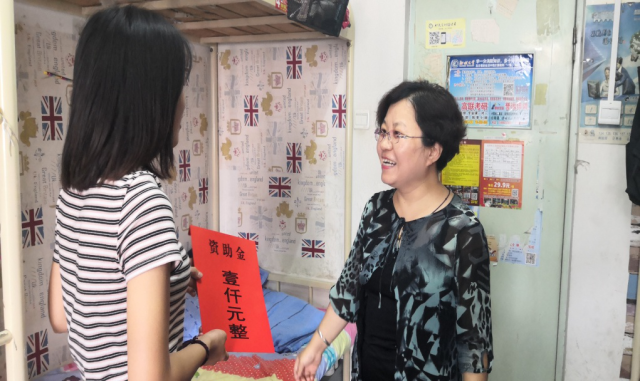 老师们亲切询问了同学们的返校情况以及在生活、学习方面的困难,亲手送上了资助金。老师向他们提出几点希望:第一,努力学习,自强自立;第二,提高自己的综合素质,争取全面发展。员工们对老师们的到来倍感激动,纷纷向老师诉说自己的假期生活,并向老师的关心与帮助表达感谢。