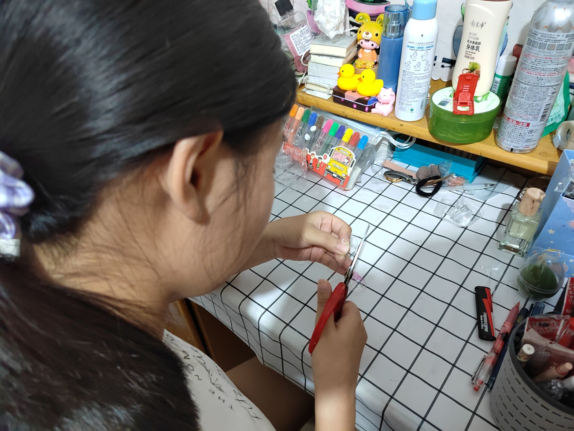 活动伊始,志愿者们在家乡或社区开展塑料瓶回收再利用活动,由此收集一些合适的废弃塑料瓶。活动过程中,参与者根据自己的创意将志愿者收集所得的废弃塑料瓶、一次性塑料袋等废弃物进行筛选、回收、利用,发挥想象力动手创作,将它们制成美丽的工艺品,此外,也可以制作一些塑衣绘画出自己喜欢的环保图案。同时,为号召当地居民积极参与,志愿者们通过专门的抖音号进行线上宣传,让更多的人了解到生活中废弃物品再利用的相关知识和实践成果,并切身参与进来,分享自己废物利用的经验,交流废物利用与现实生活融合的建议,以更好地理解美丽中国专题中治塑环保的意义。活动最后,志愿者们在抖音橱窗等平台上将作品进行售卖,并将工艺品售卖的钱全部用于慈善,以此形成完整的产业链,更好的建设美丽中国。