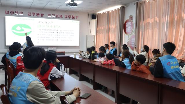活动伊始,志愿者以图文并茂的形式为小朋友们细致讲解我国水资源的分布情况,阐述水资源是生命之源、生产之基、生态之要。他们通过知识小竞赛、设计标语等简单有趣的互动形式,使小朋友们初步了解全球水资源面临匮乏、污染的严峻形势,并进一步引导他们学习节约用水、科学用水以及保护水资源的方法。手工制作环节,志愿者指导小朋友们制作漂流瓶,并全程关注其制作进度,及时解决他们在制作过程中遇到的各种问题。小朋友们表现出浓厚兴趣,积极使用自己喜欢的贴纸装饰玻璃瓶。最终在志愿者的耐心指导下,小朋友们成功制作出一个个精致美观的漂流瓶。
