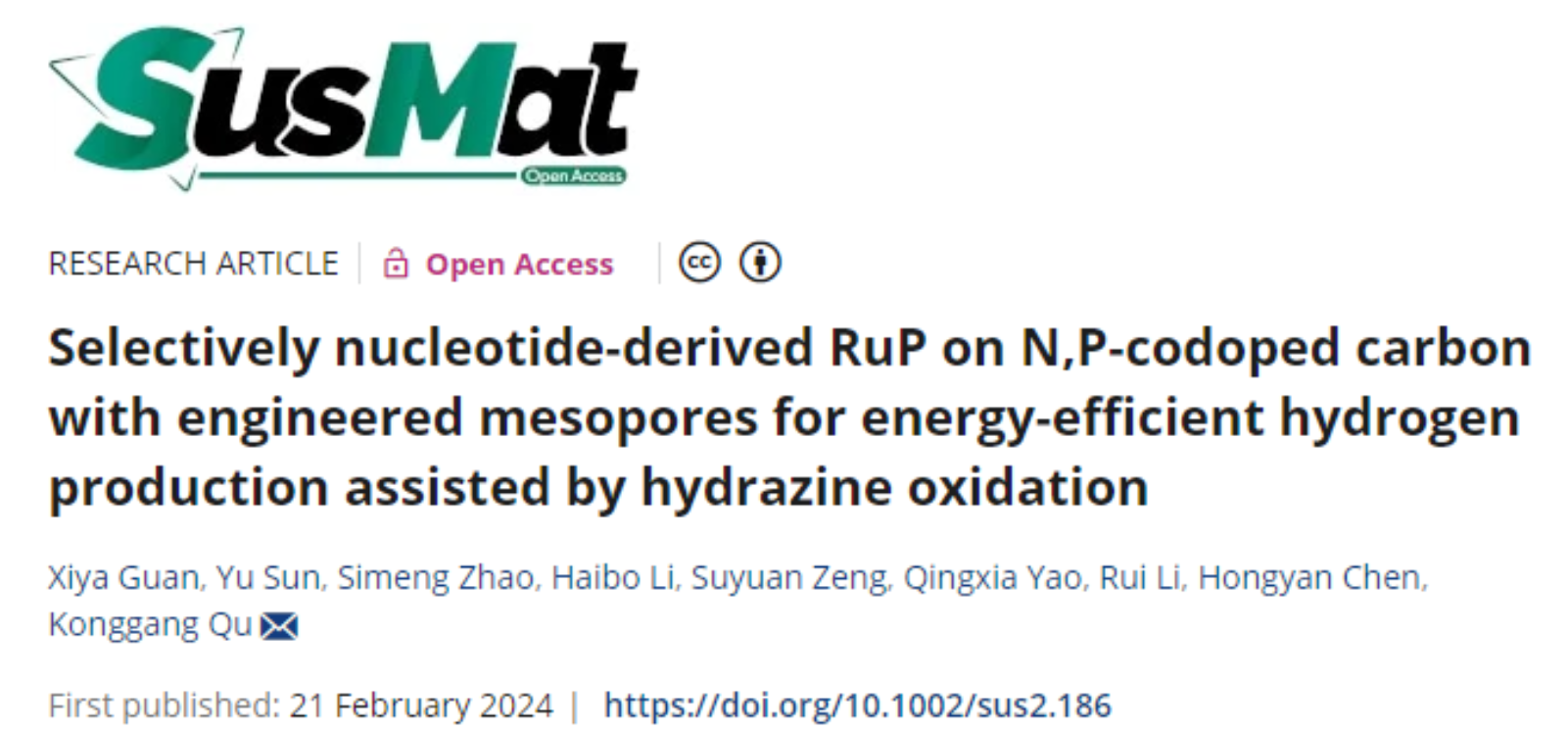 ladbrokes立博曲孔岗课题组在SusMat(影响因子:28.4)发表了题为Selectively nucleotide-derived RuP on N,P-codoped carbon with engineered mesopores for energy-efficient hydrogen production assisted by hydrazine oxidation的研究论文,利用具有超低理论氧化电位的肼氧化反应取代析氧反应来降低整体电势,在钌基纳米材料用于肼氧化辅助的节能型制氢领域取得突破。