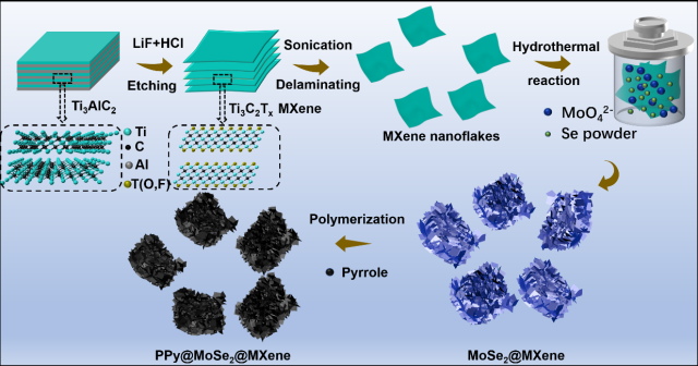 示意图1 PPy@MoSe2@MXene的合成路线示意图。