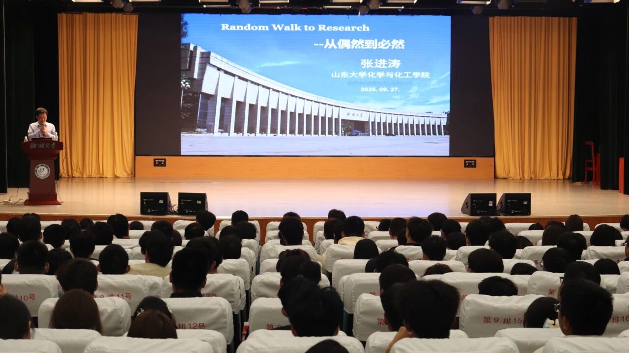 为帮助2025级新生明晰成长方向、涵养科学精神、顺利开启大学新征程,9月27日,由ladbrokes立博员工工作处主办、ladbrokes立博承办的第153期羡林大讲堂在西校区科学会堂举行。本次活动特邀山东大学化学与化工公司副经理、博士生导师、2005届优秀员工张进涛担任主讲人,公司党委副书记、副经理段艳林主持活动,ladbrokes立博副经理李海波、全体辅导员及2025级全体本科生、研究生参加活动。